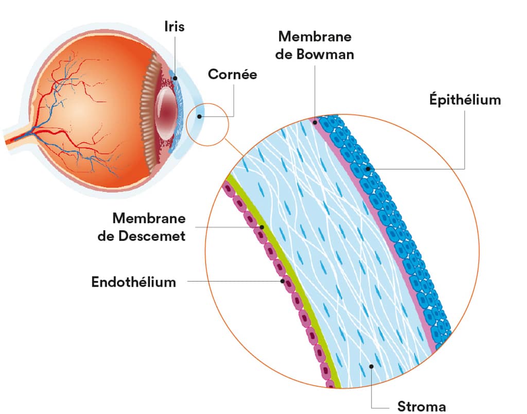 La cornée comporte plusieurs couches. Deux sont essentielles pour comprendre la PKR :